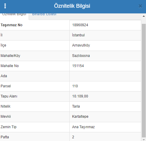 Land registry type : HISSE / Tarla