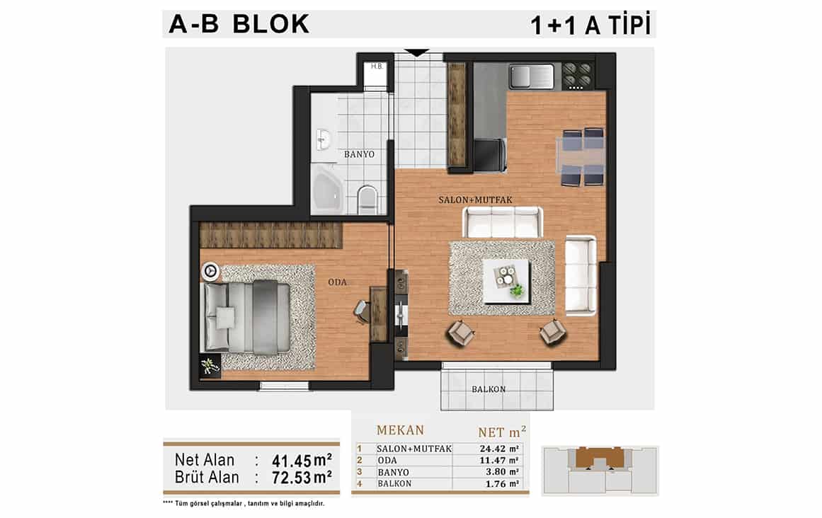 Daire tipleri 1+1 - 2+1 - 3+1