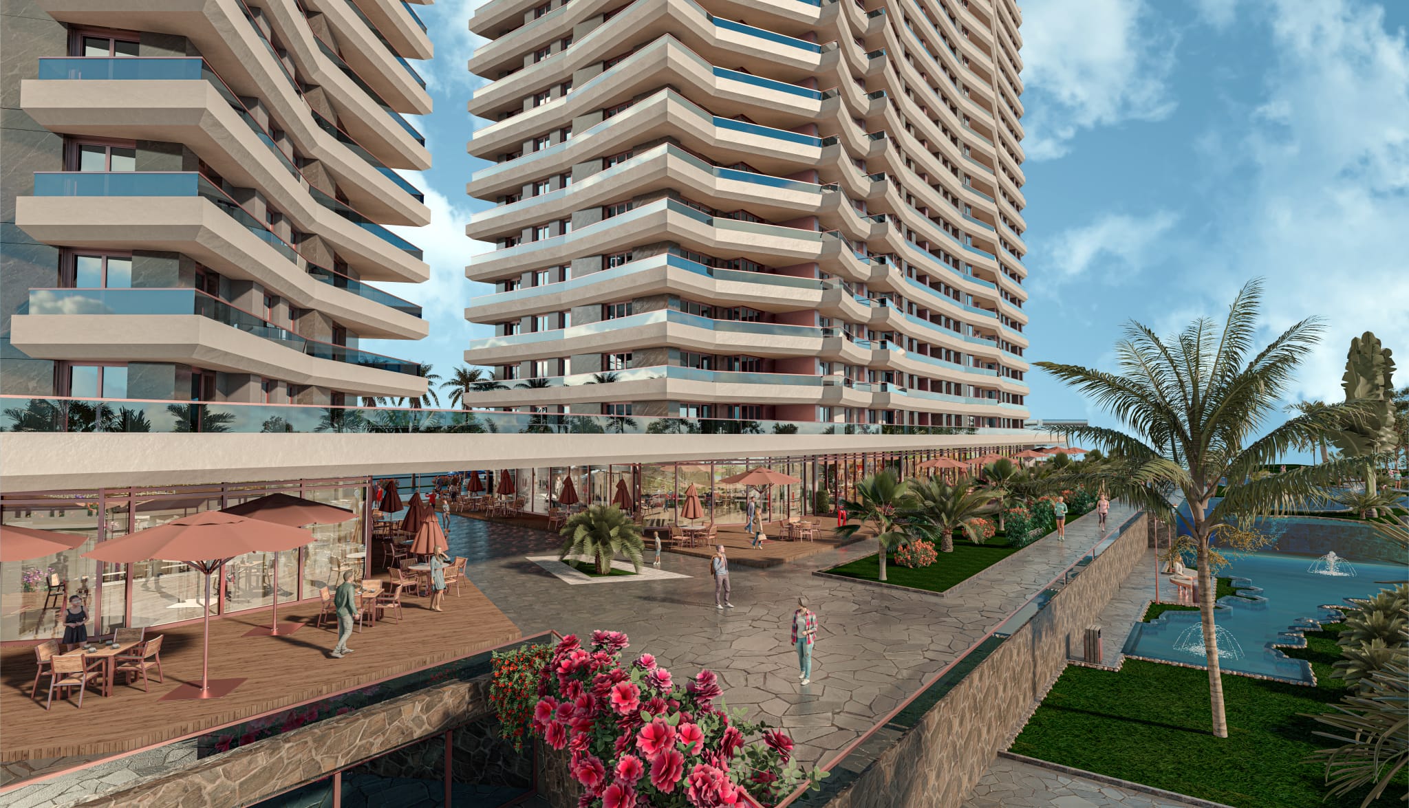 • FLAMINGO ALKENT projesi 36.000 m2'lik bir arsa alanına yayılıyor ve %70'ine yaklaşık 28.000 m2'lik yeşil alanların hakim olduğu, Marmara'ya hakim 20 kata kadar yükseklikte iki kuleden oluşuyor. Deniz ve Küçükçekmece Gölü.